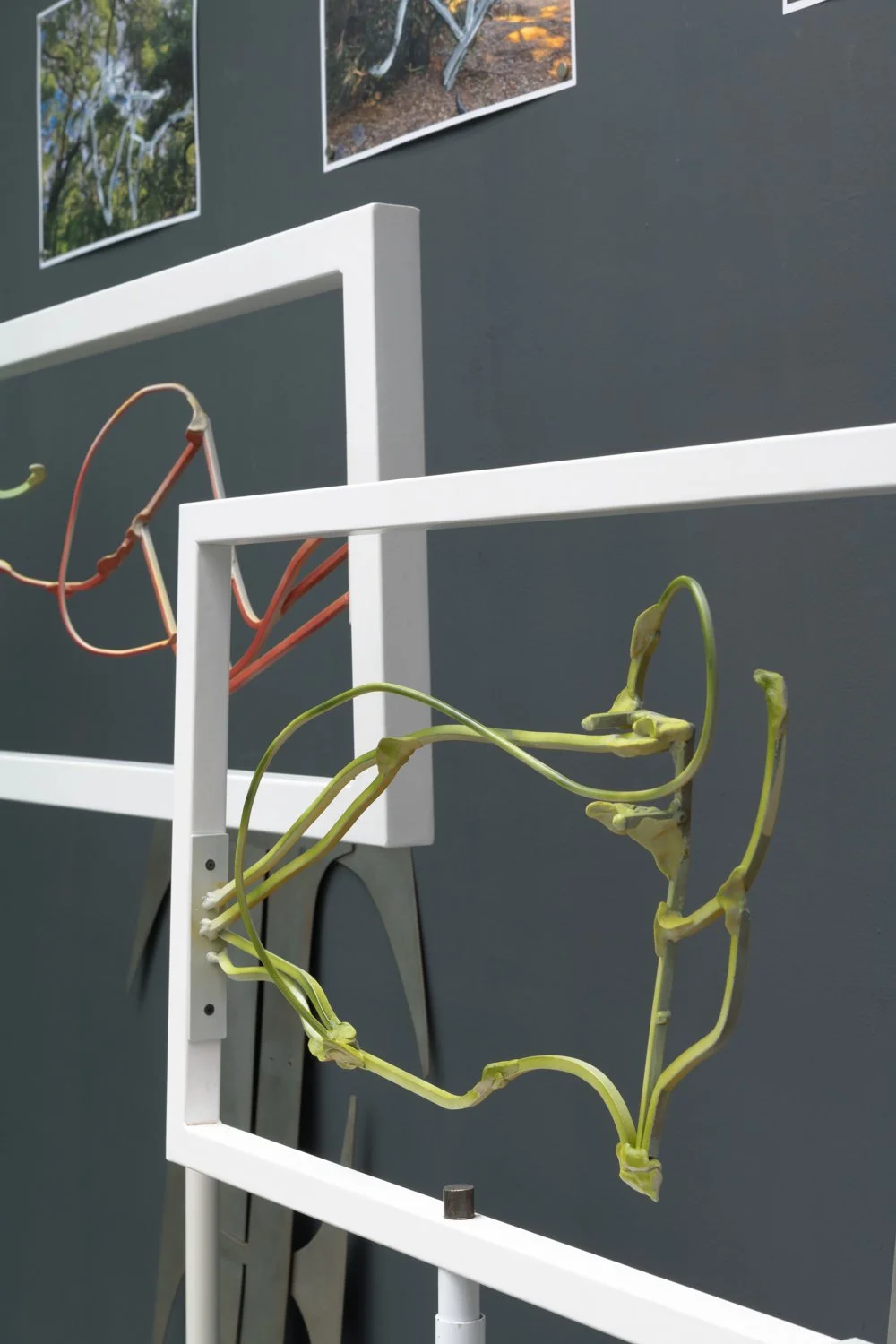 Laser cut and welded metal, acrylic paint, photographic prints with acrylic in