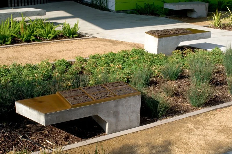 A site-specific public art feature at Habitat 825 on North Kings Road in West Hollywood, CA