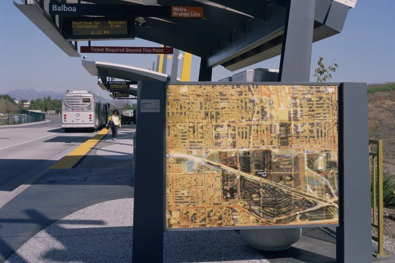 Site-specific public art features at the MTA Orange Line, Balboa Station, in Los Angeles, CA